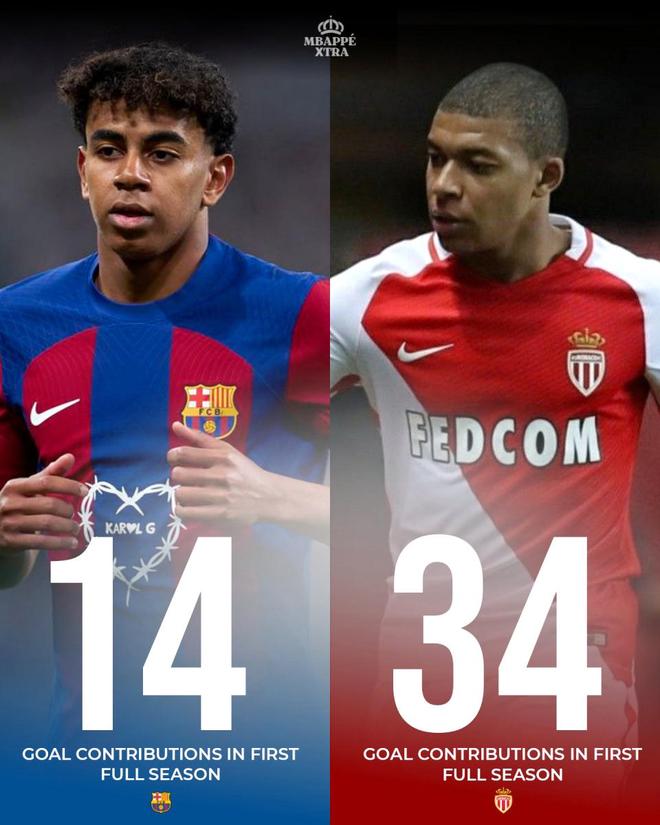 现如今,两人在西甲直接对话,上赛季虽然皇马四大皆空,但是姆巴佩的个人数据冠绝西甲,手握西甲金靴与欧洲金靴,表现也足够出色了吧,本赛季在银河战舰多线作战的情况下,早早就进入了火爆状态,各项赛事出战11场比赛,轰入15球,领跑西甲与欧冠射手榜,他这台进球机器,场均进球率超过1球,效率那是相当的恐怖。