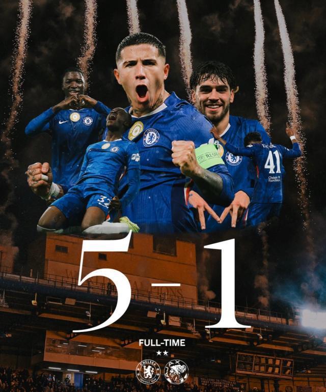 2025年10月23日 四连胜!切尔西5-1十人阿贾克斯 恩佐、埃斯特旺点射凯塞多建功